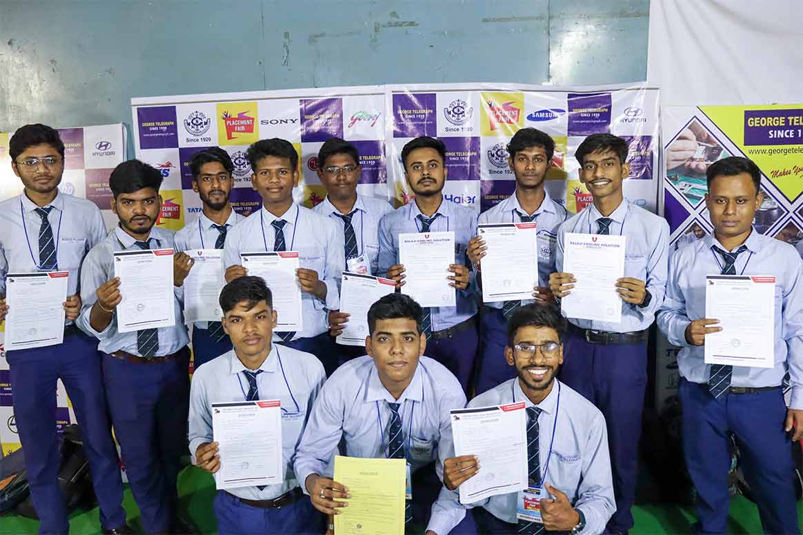 The selection process involves thorough interviews conducted by the companies, ensuring that the most suitable candidates are chosen. Successful students receive immediate offer letters, a testament to the efficiency and effectiveness of these fairs. George Telegraph boasts a remarkable track record, having facilitated quality placements for as many as 1500 students in a single event. Annually, George Telegraph students significantly contribute to fulfilling the technical manpower needs of West Bengal & beyond showcasing the vital role our institute plays in the local job market and economy.